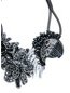 Handmade collar necklace with 3D beaded flowers and embellished parrot head. Held together with vegan leather whipstitched cord.